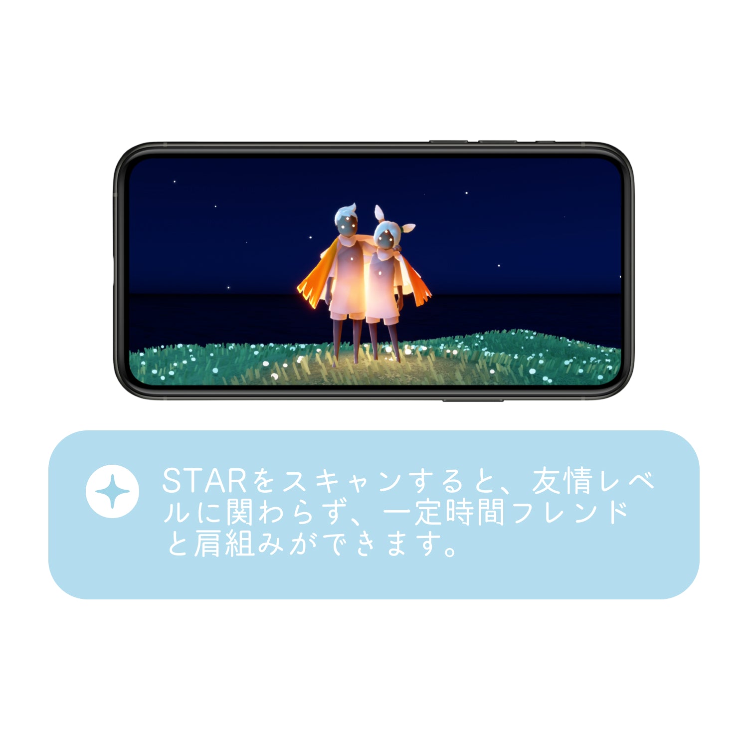 STARをスキャンすると、友情レベルに関わらず、一定時間フレンドと肩組みができます。