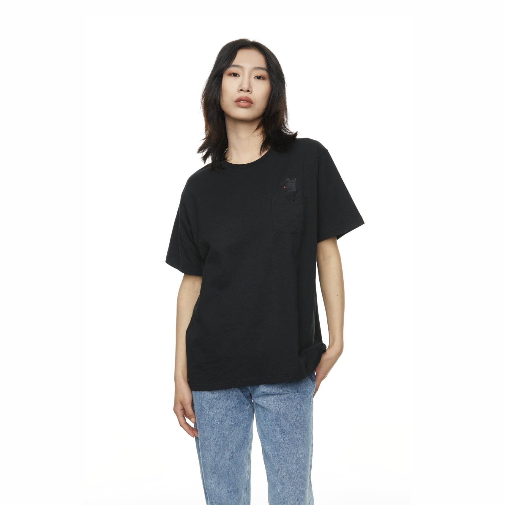 軽やかなTシャツは暗黒竜もとりこにしてしまいました。爪をポケットに引っ掛けたり、またはポケットの中で優しくかくまったり。いつもの冒険が、なんだか力強くなったように感じられるかもしれません。