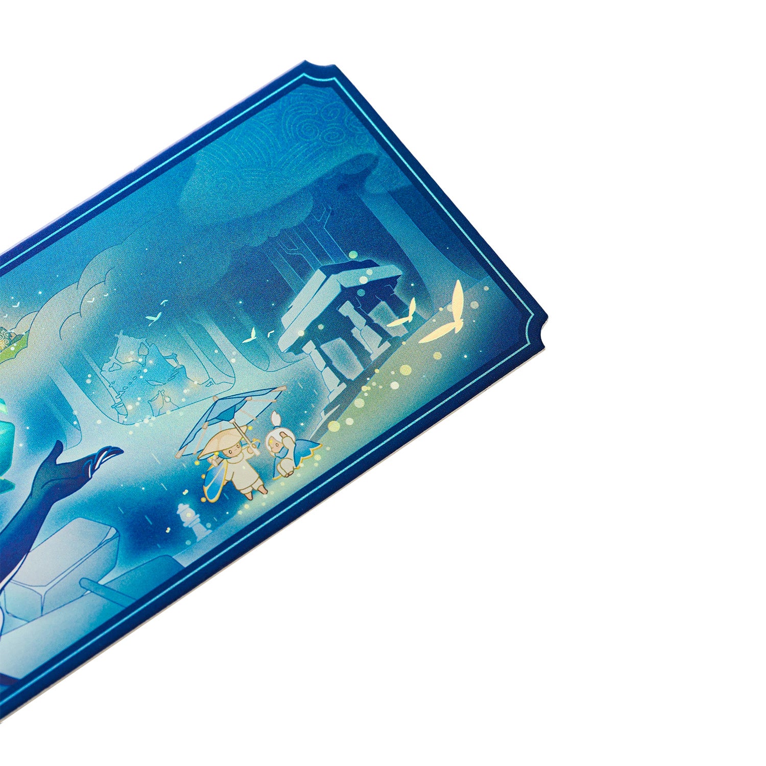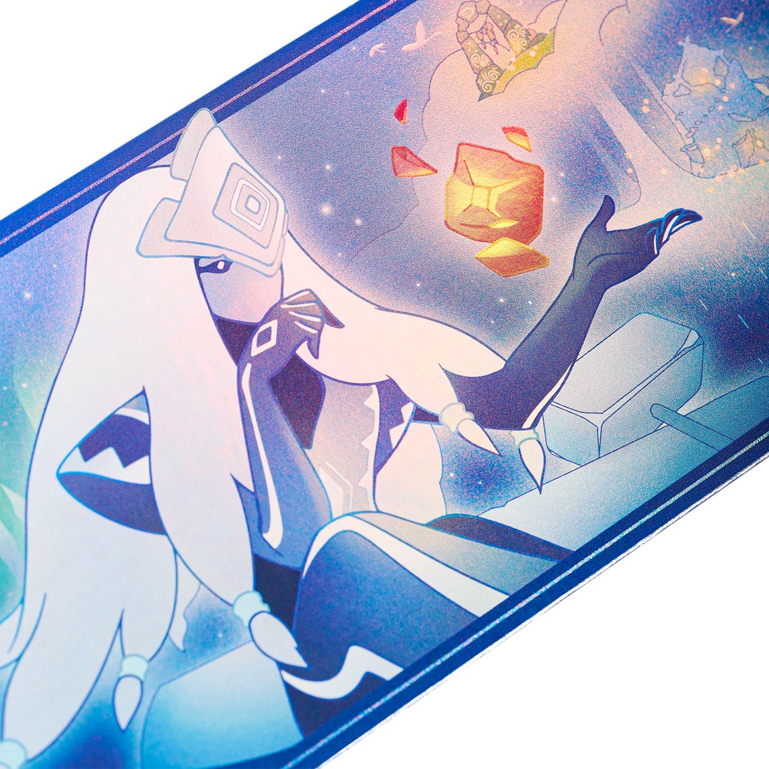 雨林の記憶を、きらめきとともに閉じ込めました。雨林の大精霊と神秘的な風景を、繊細なタッチで表現しています。重なり合うホログラム加工が光を受けて輝き、見る角度によって異なる表情を見せる、奥行きのある美しい仕上がりに。出会いと導きのあたたかな記憶を、いつまでもそばに。
