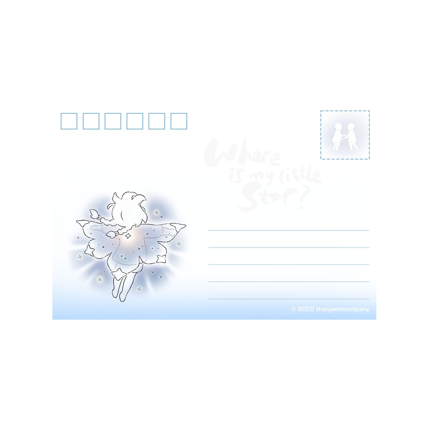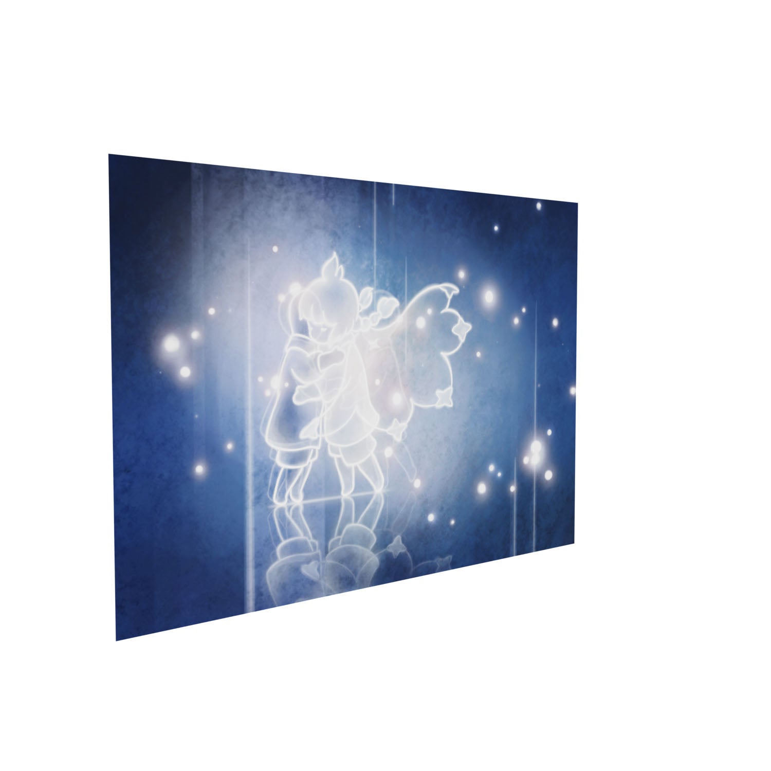 涙に潤んだ星空はやがて蝶の羽ばたきを育む。漂う光と影の流れのなかで静かに旅立ちを告げる。3Dのポストカードを斜めにかざして、物語に登場する儚いシーンをお楽しみください。尊い物語をきらめく宝物として手に入れましょう。