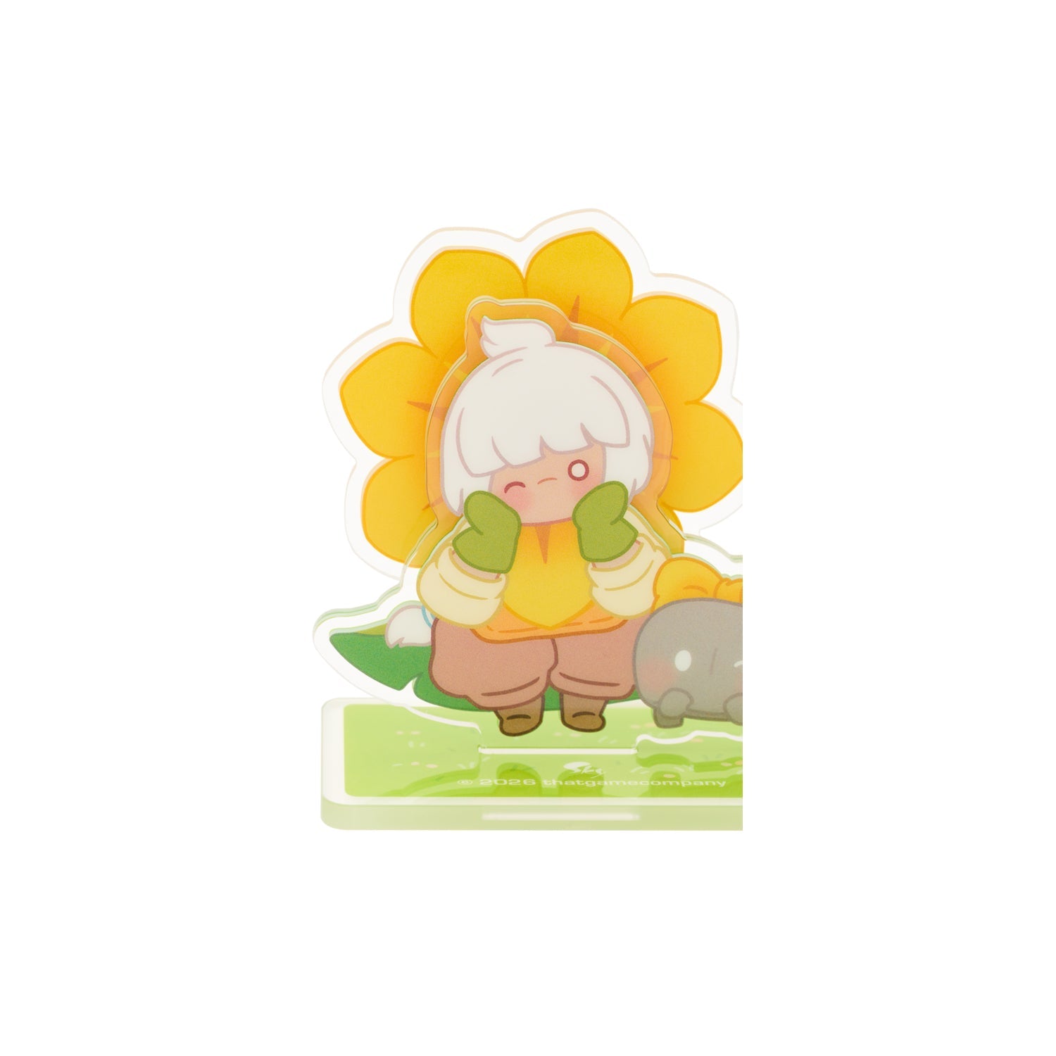 太陽を眺め、花びら踊る。ひまわりを身につけた星の子どもが描かれた、回転式アクリルスタンド。指先で触れると花びらがなめらかに回転します。飾って明るく、動かせば愛らしく、純粋な喜びのひとときを届けてくれるアイテムです。
